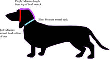 In order to provide the perfect fit for your pup please go to the fourth photo and measure around your dog's neck, in front of your dog's ears around the head, and the length from the top of the head to neck. Please include these measurements in the Notes to Seller section that is available at checkout!