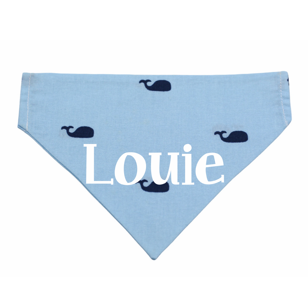 Let your pet look fabulous this summer in our Blue Whale Dog Bandana! Our over the collar bandanas slip right over your pet's collar for an easy and comfortable fit!