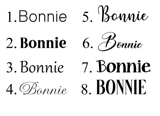3. Type the font number (Ex. Font 3) and name you would like on your bandana in the "Add a note to your order" section at checkout.